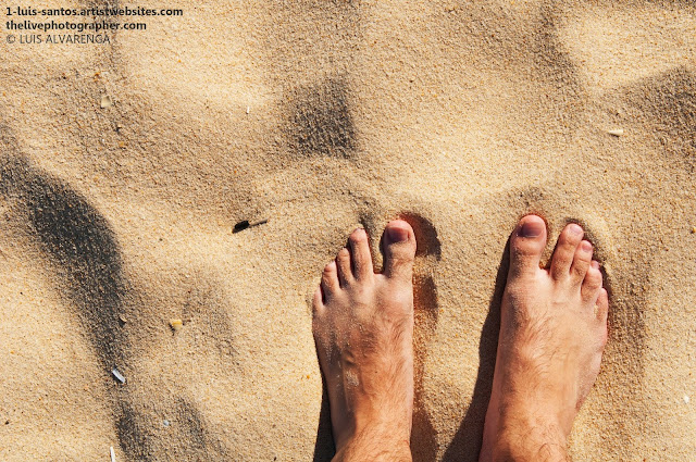 I love the image and especially, the colours of Luis’ photograph which makes a handsome cover for my novel, stylishly designed by my publishers, Ward Wood Publishing. I can feel the heat of that rock but also a certain vulnerability in the feet exposed on such a rough surface. The image is perfect, in my opinion, for Stephen Dearsley’s gradual and difficult liberation. Another of Luis’ ‘self-portraits’ shows him standing on an inviting stretch of sandy Portuguese beach at Montegordo. Lovely shot though it is, for me, it is the rock photograph that better expresses the feeling of my novel because, the beach has always been one of the few places feet have always been allowed to go bare.