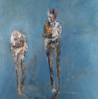 His work is passionate, uncomfortable at times and deeply human. Even if the exhibition, Equinox, isn’t directly related to the terrible situation in Syria today, it is certainly influenced by the conditions in Lawand’s native country. Ghostly stumbling figures with decimated bodies, appear or disappear in a varporously insecure landscape. I and a number of fellow poets were at the gallery for a poetry workshop where we would write poems inspired, influenced or even repelled by these vivid paintings.