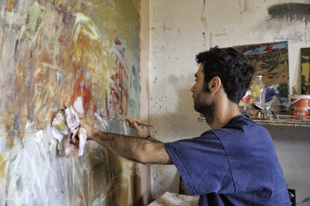 Yesterday, celebrating the completion of the final edit of my about to be published novel, I spent the day at the Mosaic Rooms, an art gallery in Kensington, London. Being a Monday, it was closed to the public so a group of us had the place to ourselves for the new exhibition, Equinox, Between Beirut and London, the first solo show in the UK, by the young France-based Kurdish Syrian artist, Lawand al-Attar, known simply as Lawand.