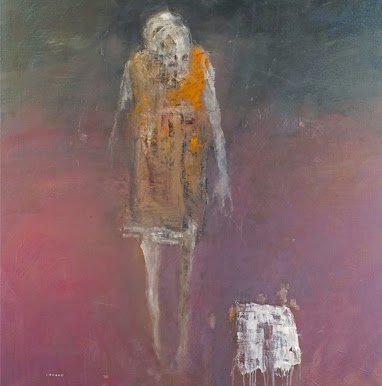 His work is passionate, uncomfortable at times and deeply human. Even if the exhibition, Equinox, isn’t directly related to the terrible situation in Syria today, it is certainly influenced by the conditions in Lawand’s native country. Ghostly stumbling figures with decimated bodies, appear or disappear in a varporously insecure landscape. I and a number of fellow poets were at the gallery for a poetry workshop where we would write poems inspired, influenced or even repelled by these vivid paintings.
